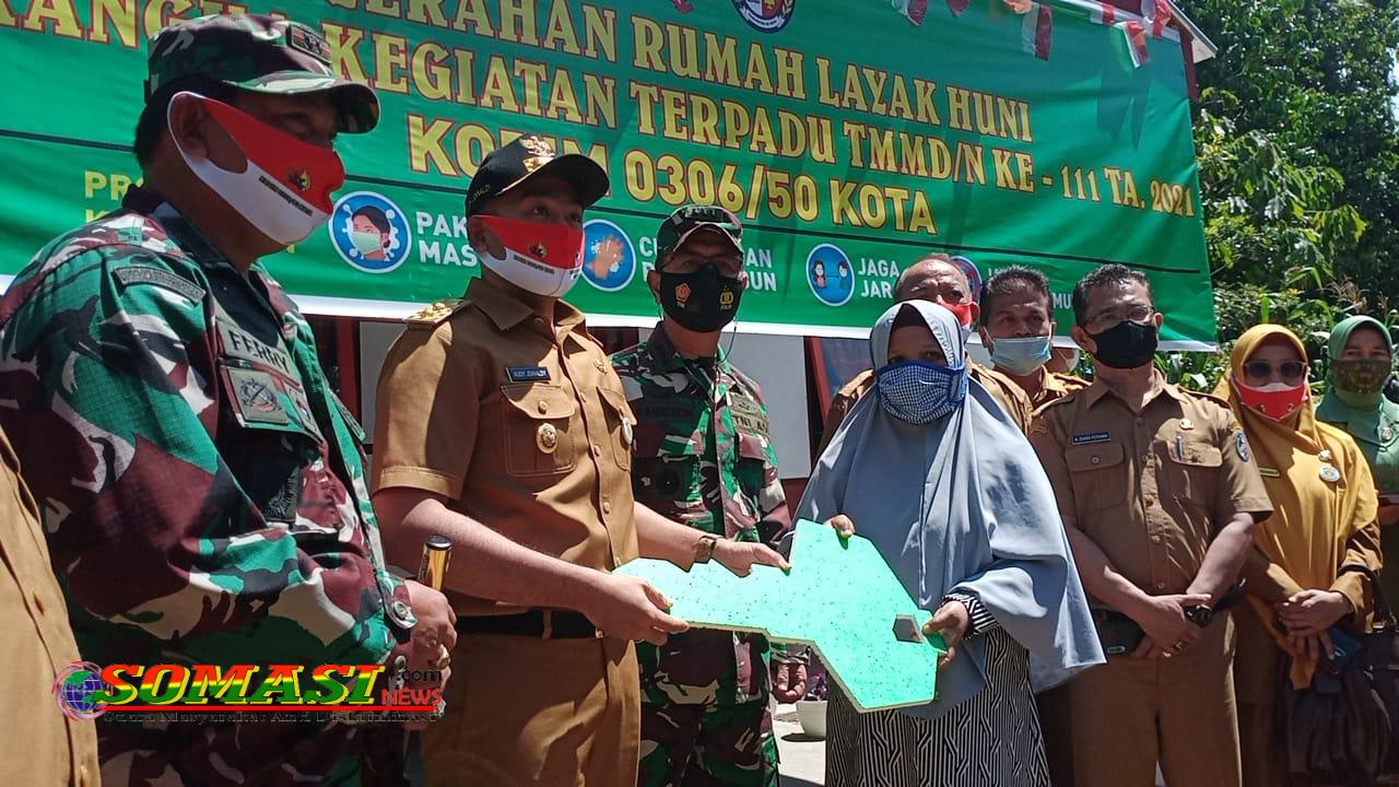 Lima Puluh Kota-Somasinews.com Wakil Gubernur Sumatera Barat hadiri kegiatan penyerahan rumah layak huni dalam rangka kegiatan terpadu TMMD/N ke 111 Kodim 0306/50 Kota. Rumah layak huni ini diberikan kepada Ibuk Lenna Yati yang sebelumnya memiliki rumah yang tidak layak lagi untuk dihuni. Penyerahan ini dilakukan pada hari Selasa, (15/6/2021) setelah rangkaian acara pembukaan TMMD/N selesai dilakukan.