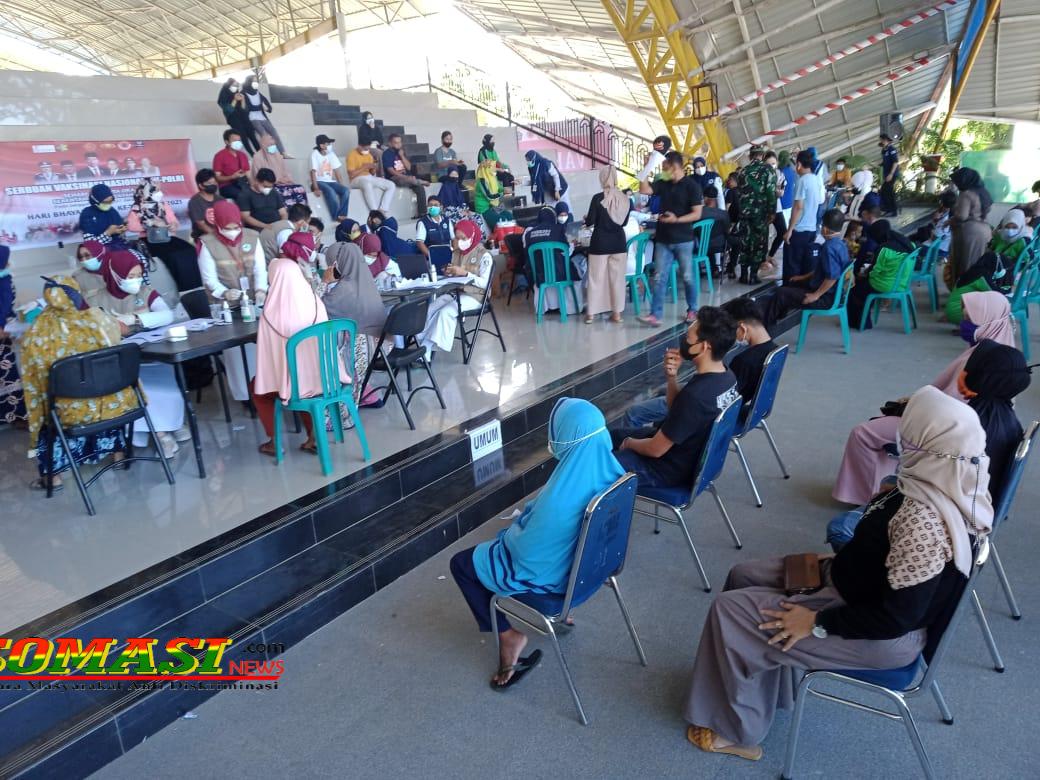 Pangkep-Somasinews.com Membludak warga masyarakat Pangkep berduyun-duyun ikuti vaksin massal Polres Pangkep jelang hari Bhayangkara ke 75 yang dilaksanakan Pemerintah bersama TNI-Polri di Tribun alun-alun lapangan Citramas Pangkep Kelurahan padoang doangan, Kecamatan Pangkajene, Kabupaten Pangkep, pada Sabtu 26 juni 2021.