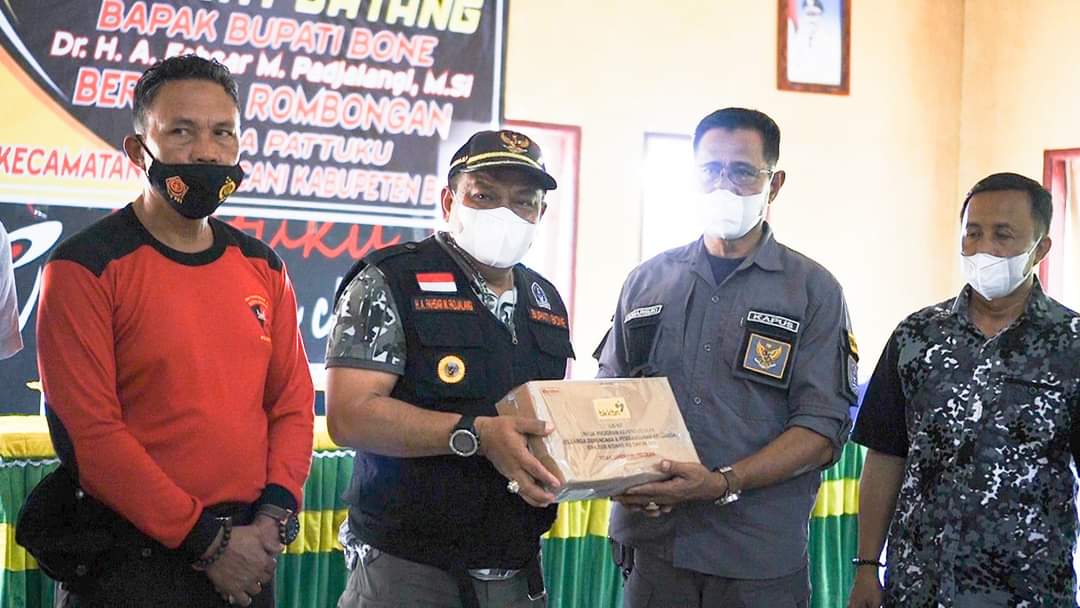 Ditempat yang sama, Bupati Bone menyerahkan bonus kepada sebelas personil operator keliling dari disdukcapil serta menyerahkan secara simbolis KK dan Akta kepada warga setempat.