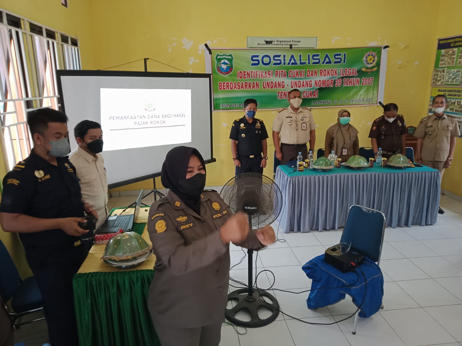 Pangkep — Somasinews.com Sulsel, Sosialisasi identifikasi pita bea cukai dan rokok ilegal berdasarkan undang-undang nomor 39 tahun 2007 tentang cukai oleh Satuan Polisi Pamong Praja, berlangsung di Aula pertemuan kantor Kecamatan Labakkang Kabupaten Pangkep pada 26 sampai dengan 27 Oktober 2021.