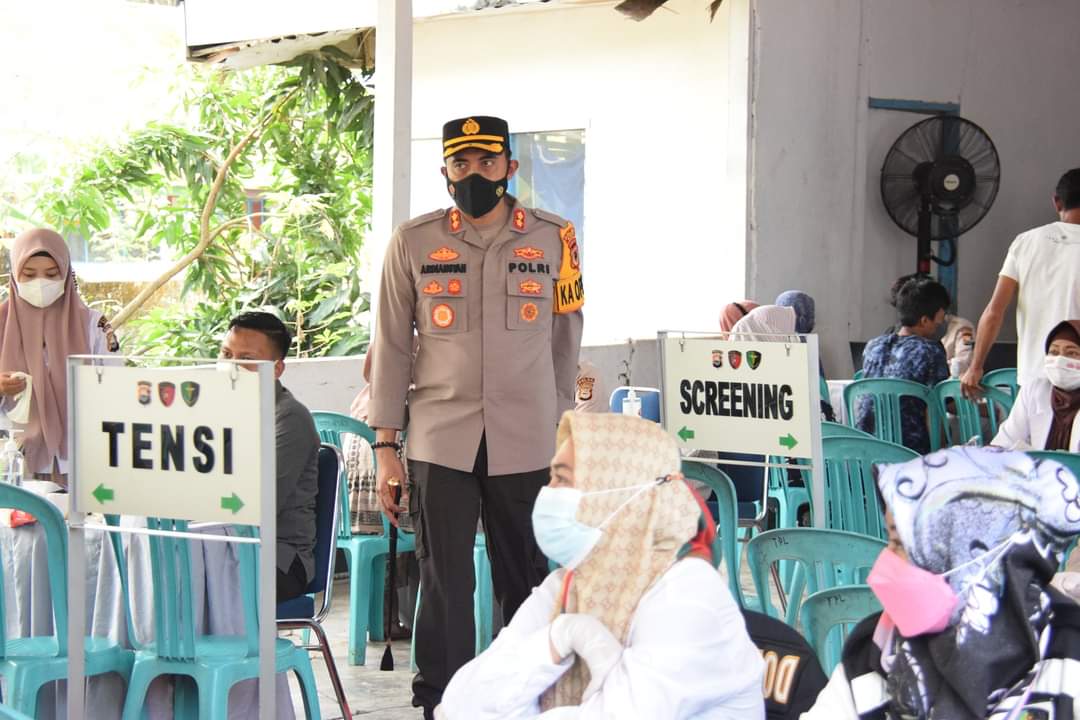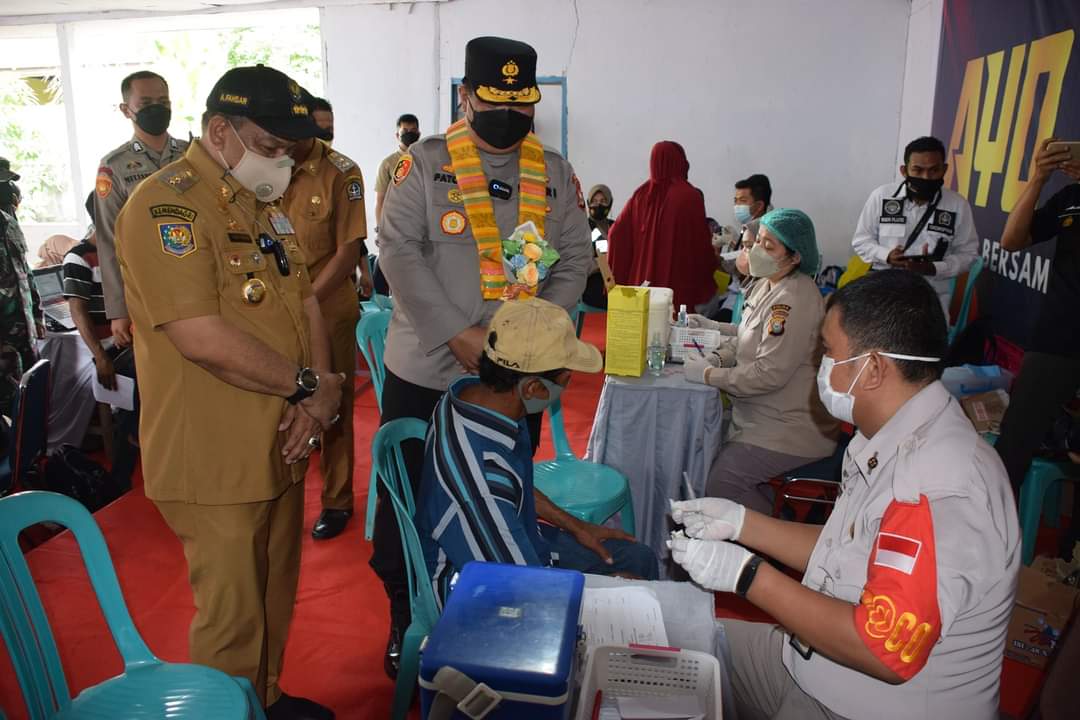 SOMASINEWS.COM BONE SULSEL, Wakapolda Sulawesi Selatan (Sulsel) Brigjen Pol Chuzaini Andi Pattopoi meninjau langsung pelaksanaan vaksinasi masyarakat Bone yang digelar secara serentak di 27 kecamatan, Wakapolda Sulsel hadir bersama rombongan dan disambut oleh Bupati Bone Dr.H.Andi Fahsar M. Padjalangi, M.Si., Kapolres Bone AKBP Ardyansyah, S.I.K.,M.Si. bersama Forkopimda Bone, tokoh masyarakat, tokoh agama dan toko pemuda di halaman Kantor Camat Lamuru, Selasa (26/10/2021).
