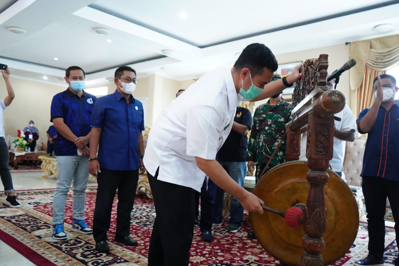 Pembukaan praporprov Petanque ditandai dengan pemukulan gong oleh bupati MYL.