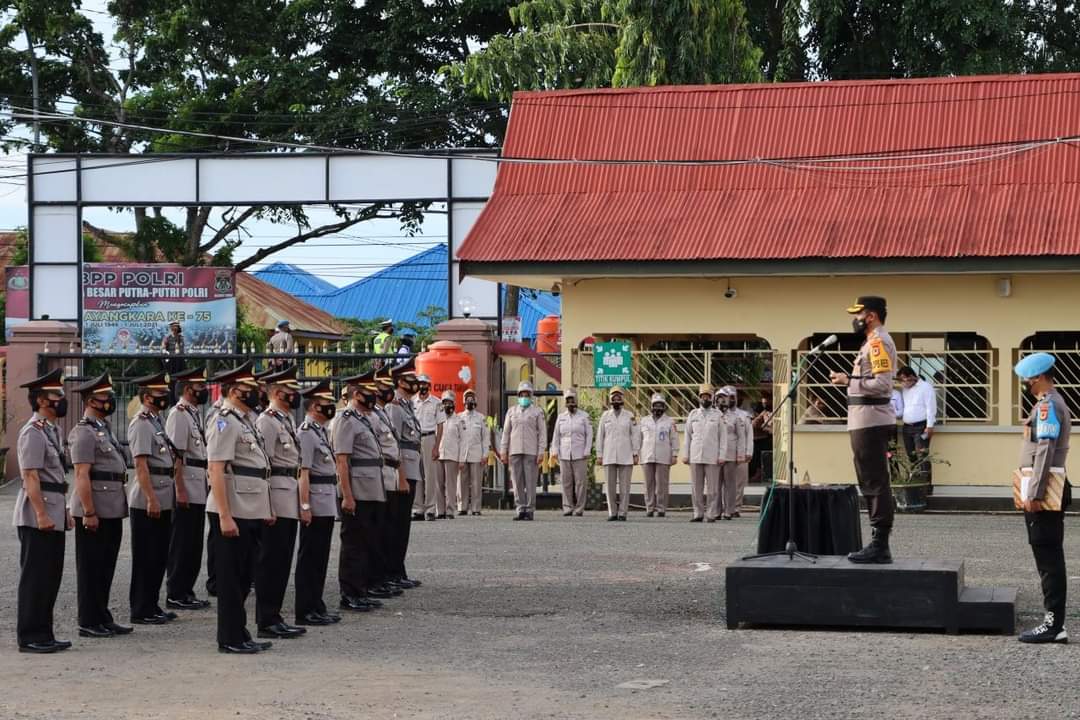 Pada kesempatan tersebut Kapolres menyampaikan ucapan selamat kepada pejabat baru dan ucapan terima kasih kepada pejabat lama.