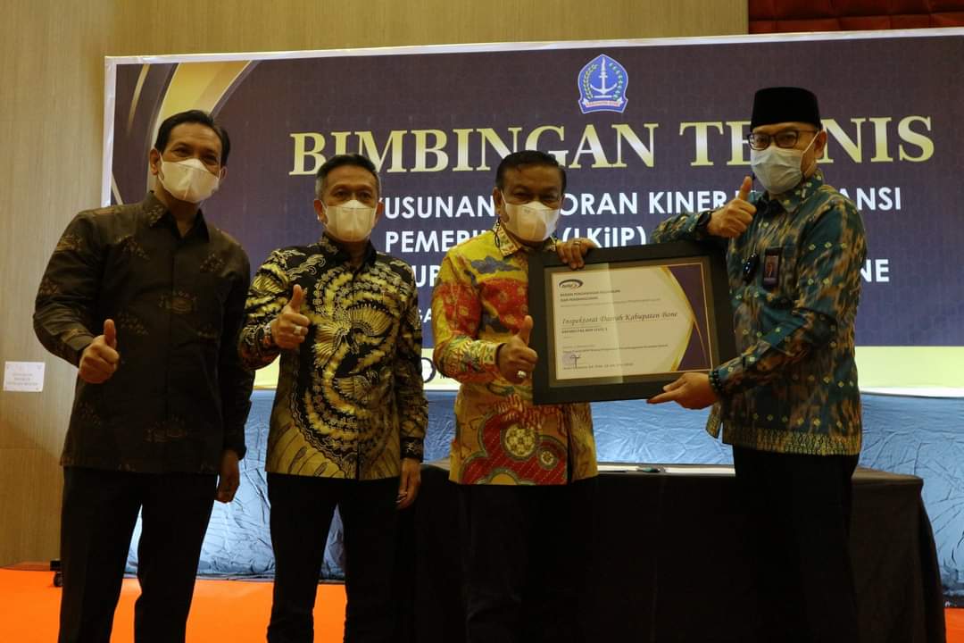 Dalam kesempatan ini, Bupati Bone menerima Sertifikat Kapabilitas APIP dari Kepala Perwakilan BPKP Sulawesi Selatan di dampingi Sekretaris Daerah Kabupaten Bone dan Inspektur Daerah Kab. Bone.