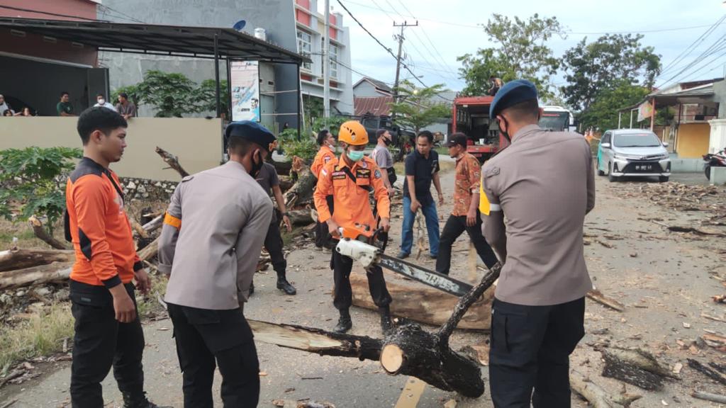 Lebih lanjut Danyon Ichsan mengatakan pihaknya berkoordinasi dengan BPBD dan PLN mengingat ada 4 pohon kering yang harus ditebang dan salah satunya tersangkut di kabel listrik.