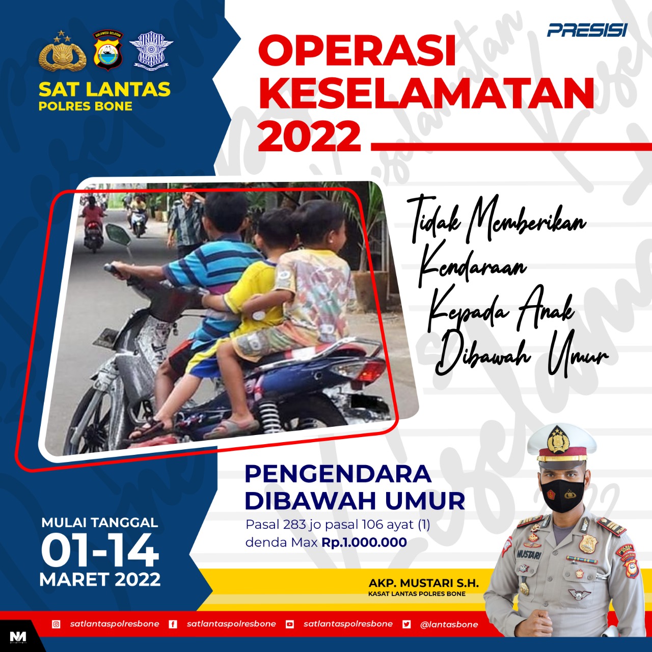 SOMASINEWS.COM BONE SULSEL, Terhitung mulai tangal 1 Maret sampai 14 Maret 2022, Personel Satlantas Polres Bone akan melaksanakan Operasi Keselamatan 2022. Operasi ini akan fokus pada tujuh sasaran prioritas.
