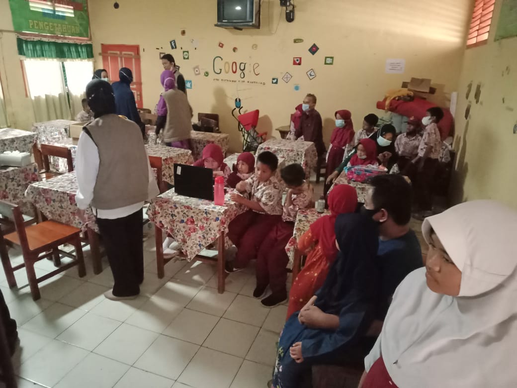 Para murid yang akan divaksin dengan didampingi orang tua masing-masing dengan antusias dan semangat mengantri di depan kelas ke dalam kelas yang disediakan sebagai tempat pelaksanaan vaksinasi.