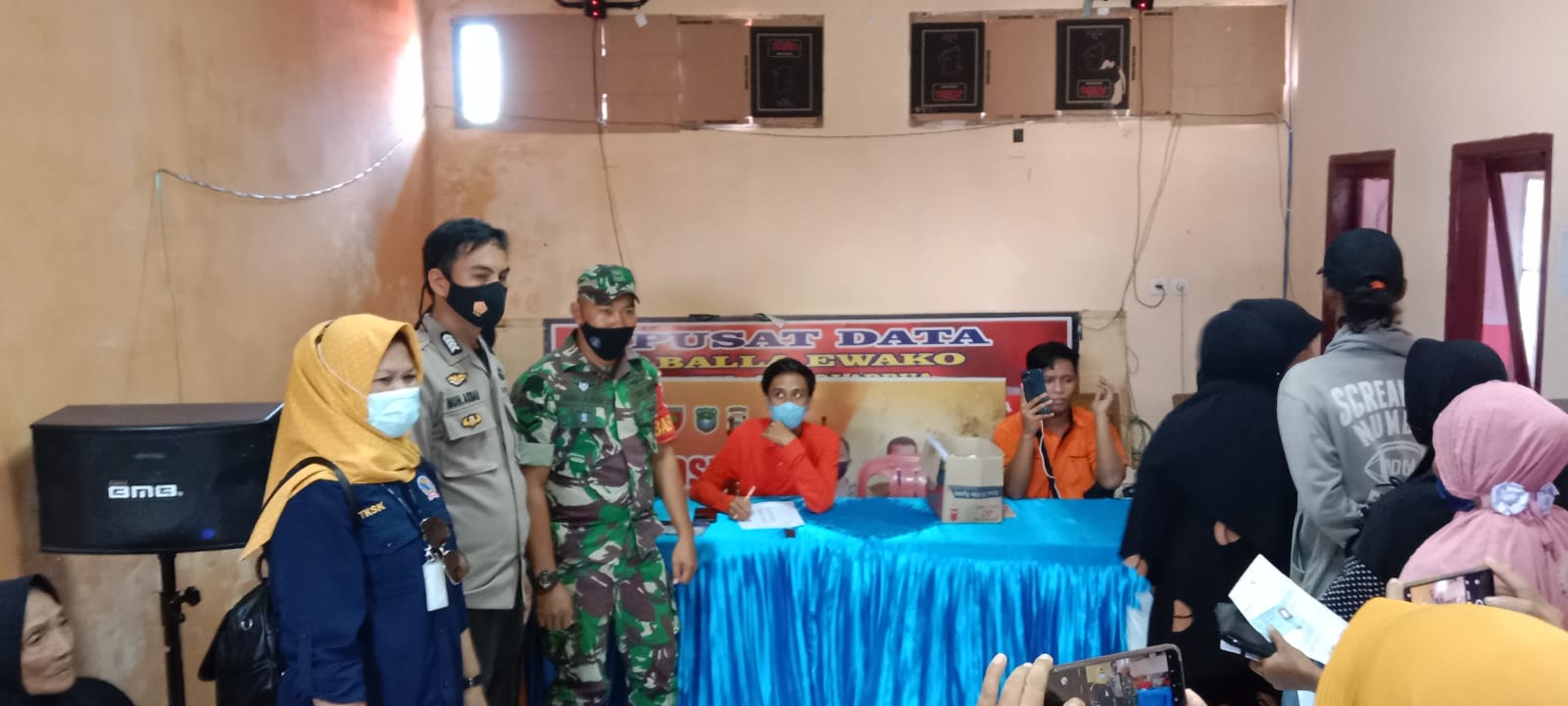 Petugas penyalur Bantuan diserahkan dari PT Pos Indonesia yang dipimpin Jahidi didampingi 2 oran petugas dengan pengawalan Sabhara Polrestabes Makassa Akbar jaya.