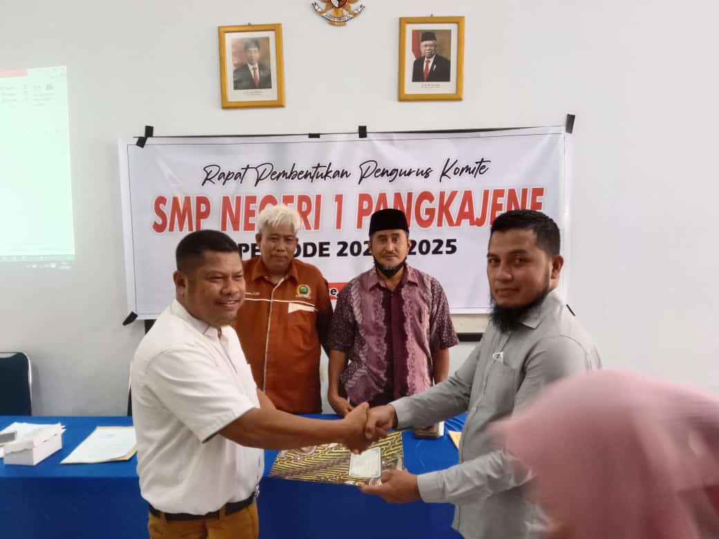 Dalam kegiatan tersebut Kepala UPT SMP 1 Pangkajene Ahmad Anshari,S.Pd,M.Pd memaparkan kepada peserta musyawarah bahwasanya Pengurus Komite Sekolah sudah selesai masa kepengurusan dan aturan Permendikbud nomor 75 tahun 2020 bahwa masa kepengurusan paling lama 3 tahun Komite Sekolah ini bisa tetap berlanjut