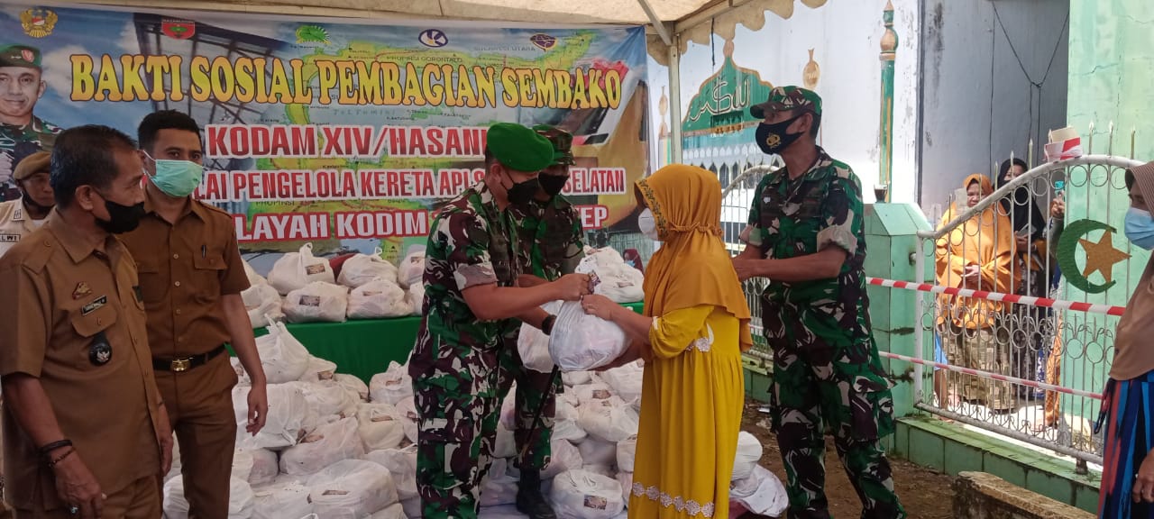 SOMASINEWS.COM PANGKEP SULSEL, Melengkapi tempat ke 3 kegiata Bakti Sosial Pembagian Sembako Kodam XIV/Hsn dan Balai Pengelola Kereta Api Sul-Sel diwilayah Kodim 1421/Pkp berlangsung di Kp Sela Desa Mangilu Kec. Bungoro Kab. Pangkep pada hari Selasa tanggal 08 Maret 2022 Pkl 13.00 Wita.