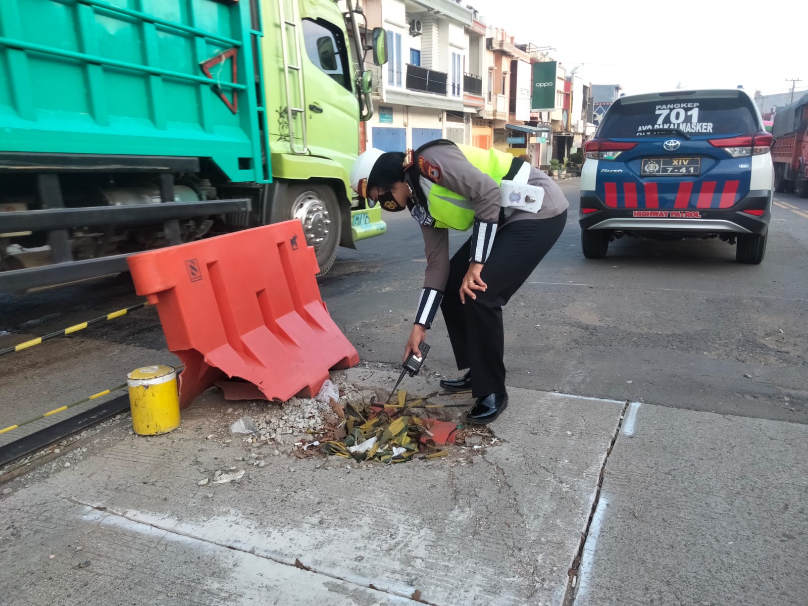 “Survey di lakukan untuk mengetahui dimana saja titik di jalan raya yang lubang dan jalannya rusak parah. Setelah itu kita lakukan koordinasi dengan pihak terkait untuk di perbaiki minimal di tutupi batu atau semen”, Ujar Kasat.