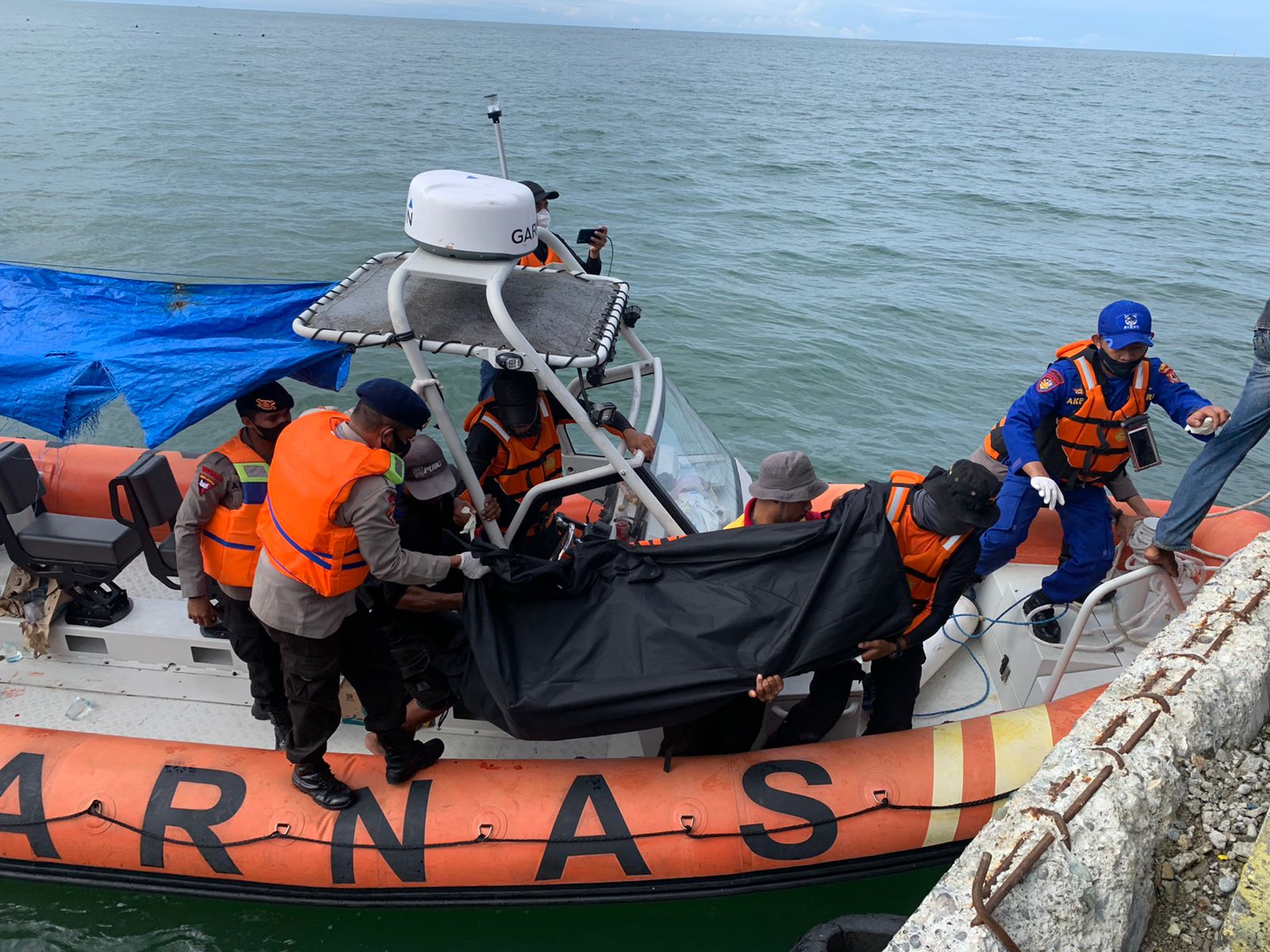 Setelah melaksanakan penyisiran kurang lebih selama 3 jam di lokasi korban tenggelam, tim SAR gabungan yang dibantu nelayan setempat menemukan Mustaking (41) dalam keadaan meninggal dunia tersangkut di serpihan perahu milik korban.