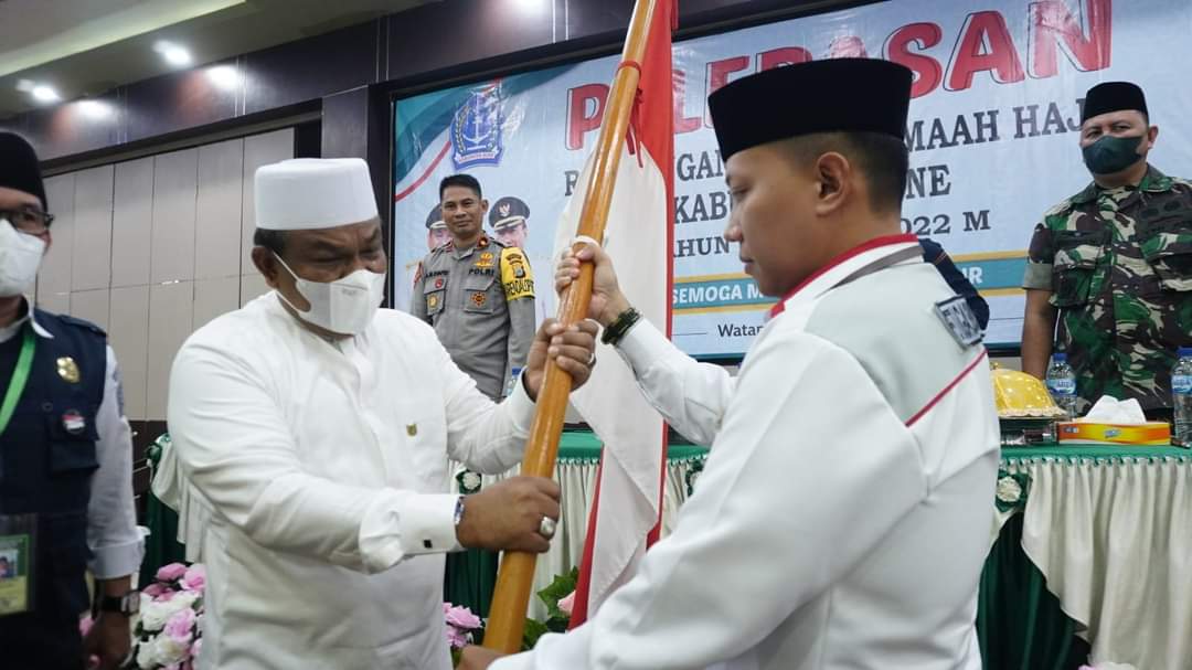 SOMASINEWS.COM BONE SULSEL, Bupati Bone DR. H. A. Fahsar M. Padjalangi, M.Si., melepas rombongan Calon Jemaah Haji Kabupaten Bone Tahun 1443 H/2022 M.