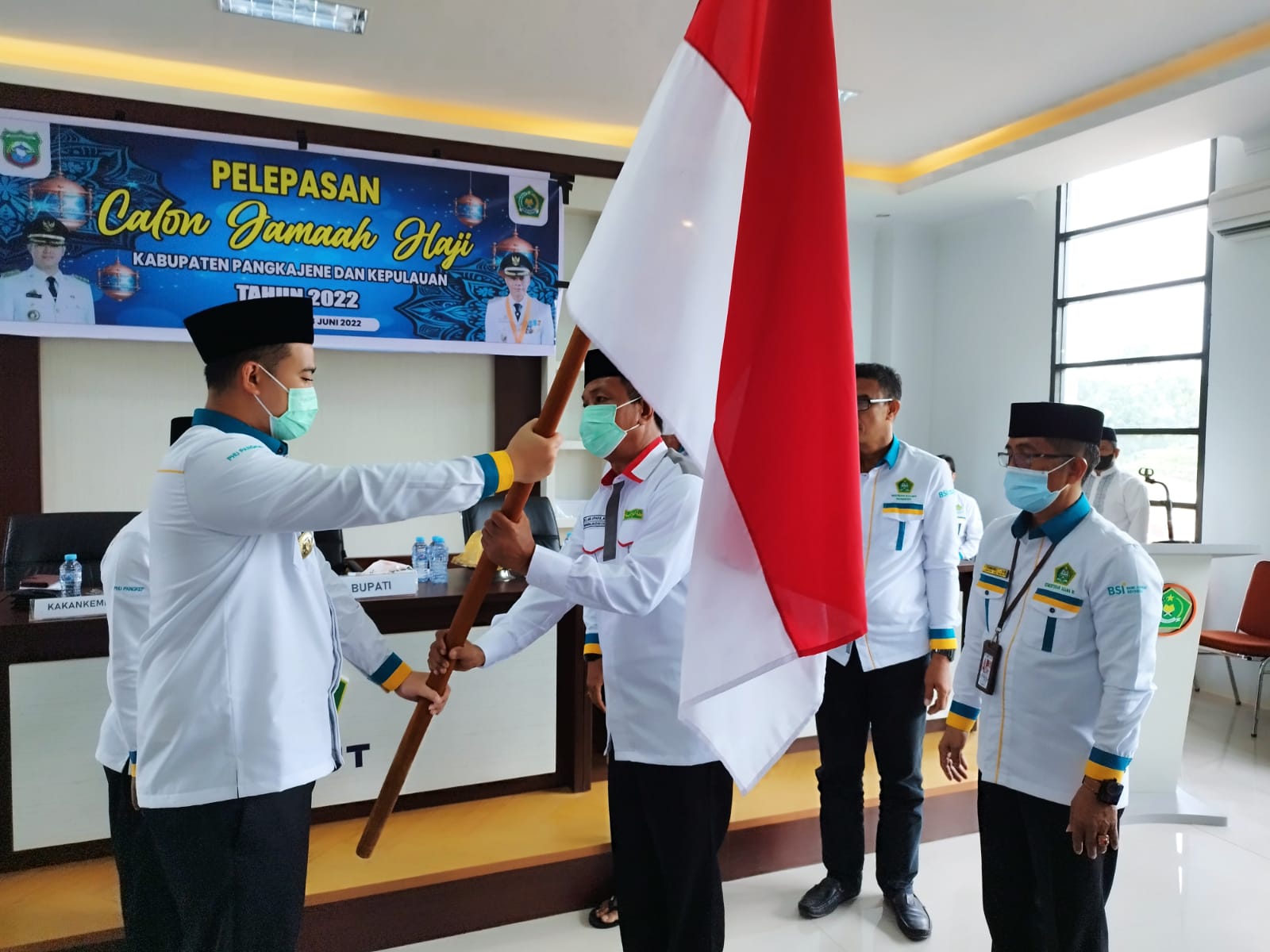SOMASINEWS.COM PANGKEP SULSEL, Pelepasan 138 orang calon jamaah haji(CJH) dilepas keberangkatannya oleh Bupati Pangkep Muhammad Yusran Lalogau(MYL) didampingi kepala kantor kementerian agama(Kakan Kemenag) Pangkep Muhammad Nur Halik, di aula pusat informasi haji dan umrah terpadu, Sabtu(18/6/22).