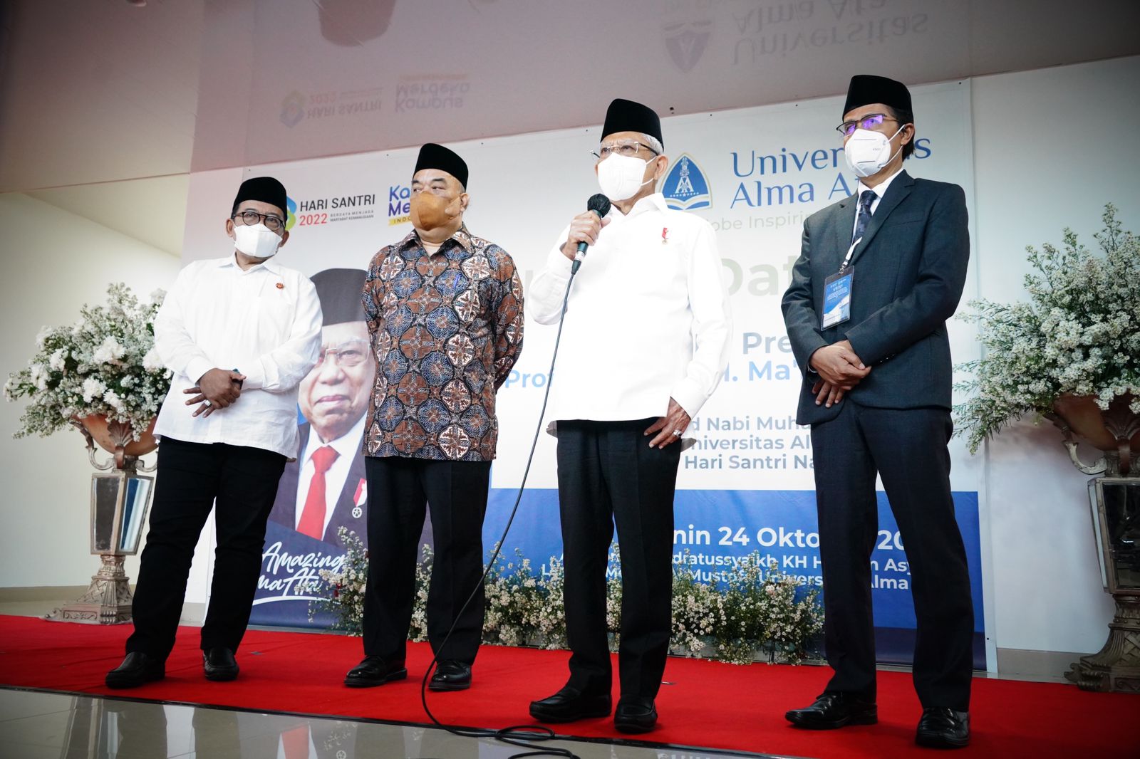 SOMASINEWS.COM YOGYAKARTA,- Usai menyampaikan Pidato Kebangsaan “Kepemimpinan Transformatif untuk Mengawal Terwujudnya Indonesia Emas 2045” di Universitas Alma Ata, Jl. Brawijaya No. 99 Kabupaten Bantul, Daerah Istimewa Yogyakarta, Senin (24/10/2022), Wakil Presiden (Wapres) K.H. Ma’ruf Amin memberikan keterangan pers kepada awak media.