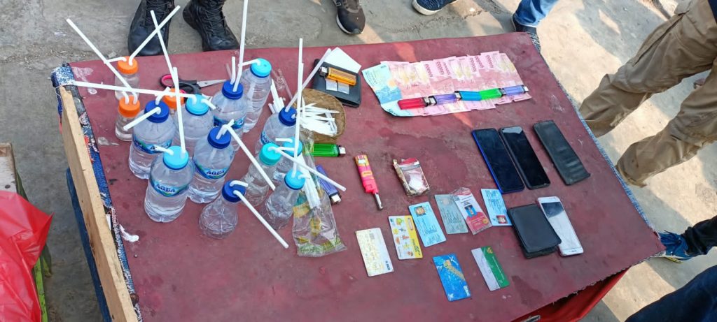 Dalam penggerebekan tersebut, polisi sedikit nya mengamankan sebanyak 9 orang diduga sebagai pengguna narkoba. Selain itu petugas kepolisian turut mengamankan barang bukti diantaranya 2 bungkus paket kecil berisi narkotika jenis sabu dengan berat brutto 0,26 gram, 14 buah alat hisap sabu (bong), 3 buah Hp dan uang tunai sebesar 1,3 juta rupiah