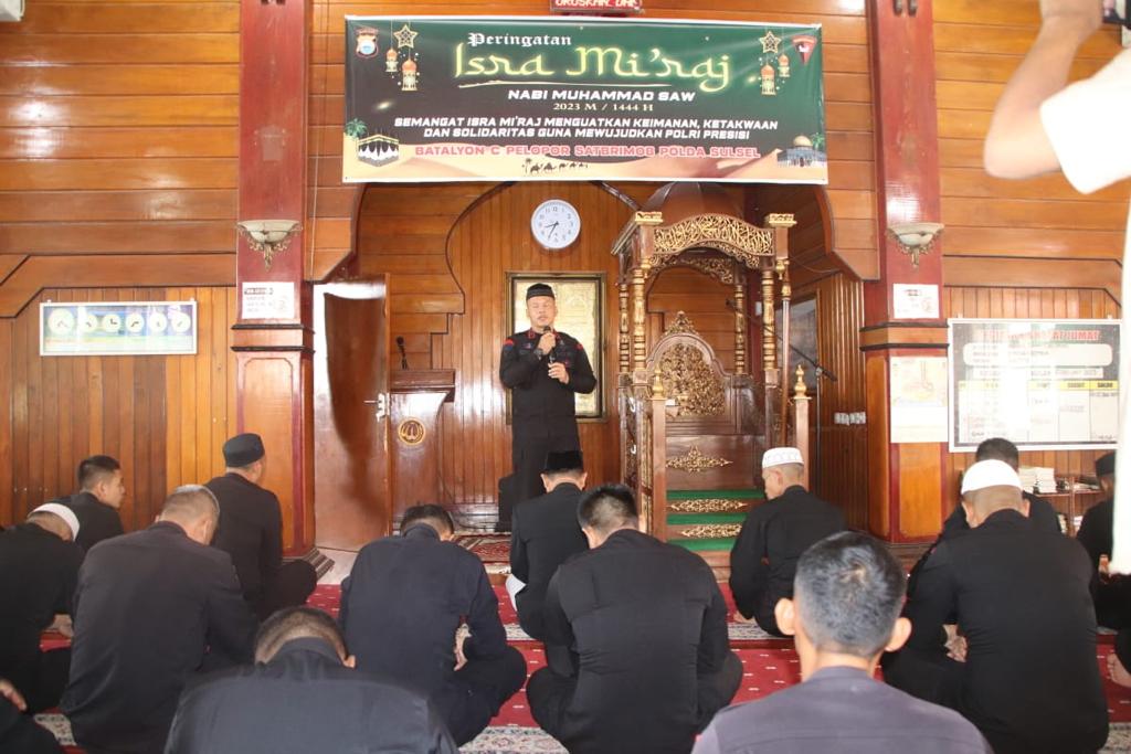 Sementara itu, Komandan Batalyon (Danyon) C Pelopor Sat Brimob Polda Sulsel, Kompol Nur Ichsan, S.Sos, M.Si dalam sambutan menyampaikan, Isra Mikraj merupakan peristiwa penting bagi umat Islam.