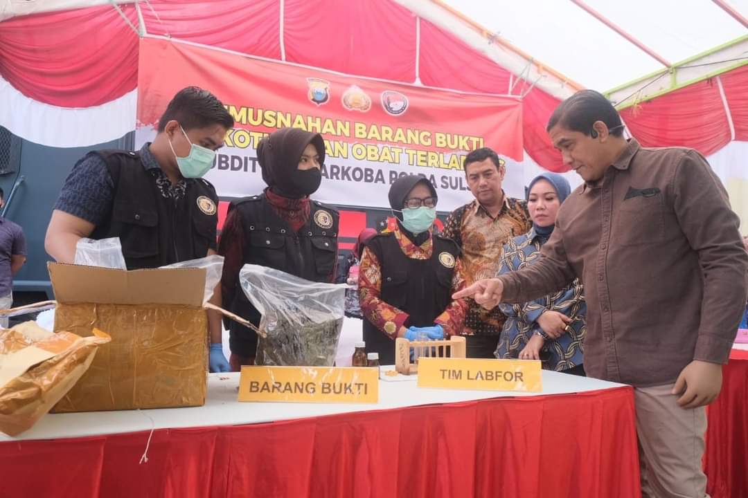 Pemusnahan barang bukti narkotika berdasarkan laporan polisi : LPA/41/II/2023/SPKT, Tanggal 14 februari 2023. Sebelum dilaksanakan pemusnahan, barang bukti yang disita tersebut terlebih dahulu dilakukan pengujian oleh tim dari Labfor.