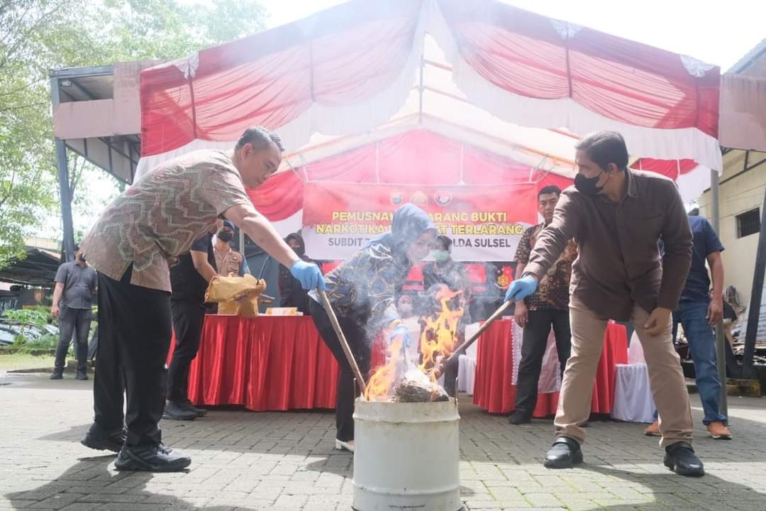 Pemusnahan dilakukan langsung oleh Direktorat Reserse Narkoba Polda Sulsel didampingi oleh Kasi Narkotika Kajati Sulsel dan Wakil Direktur Narkoba Polda Sulsel. Pemusnahan tersebut juga disaksikan langsung oleh para tersangka.