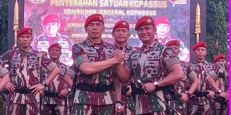 SOMASINEWS.COM JAKARTA – Mayor Jenderal (Mayjen) TNI Deddy Suryadi resmi menjabat sebagai Komandan Jenderal (Danjen) Komando Pasukan Khusus (Kopassus) ke-36. Mayjen TNI Deddy menggantikan Mayjen TNI Iwan Setiawan yang menjadi Pangdam XII/Tanjung Pura, Kalimantan Barat-Tengah.