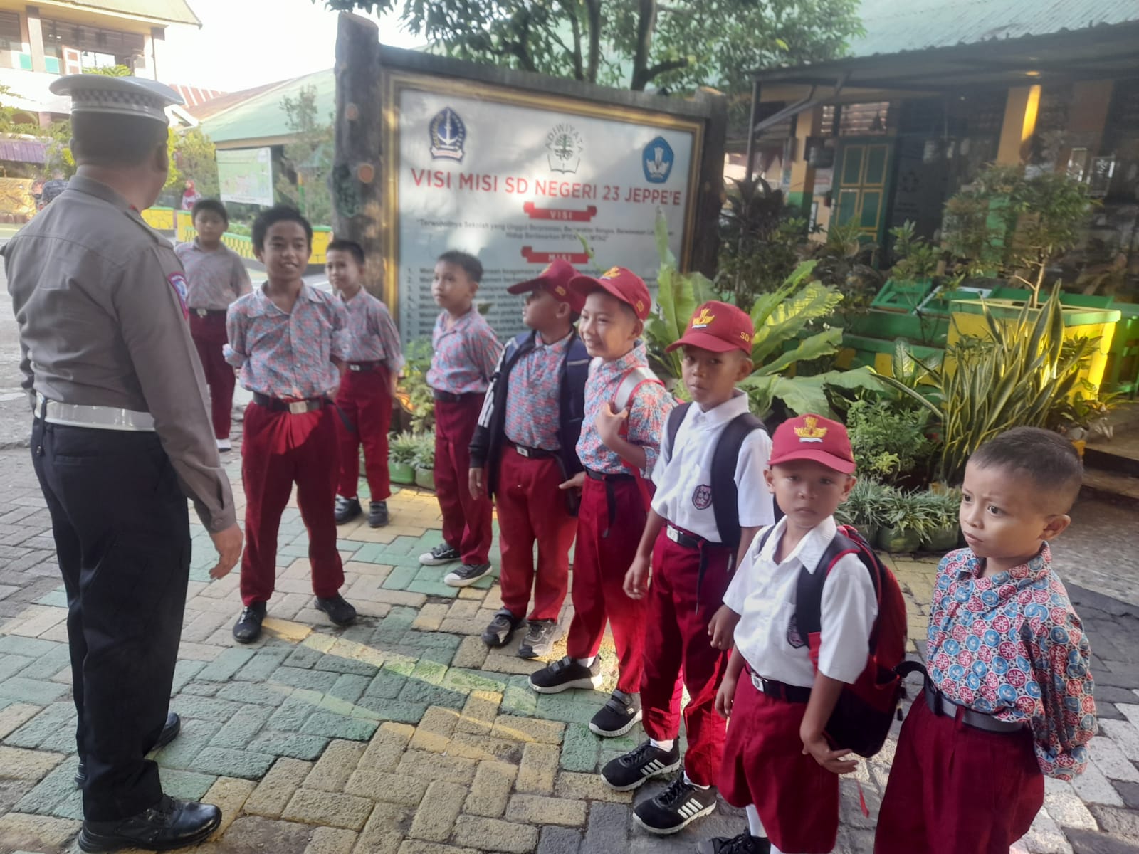 SOMASINEWS.COM BONE – Kanit Kamsel Satlantas Polres Bone Ipda Ishak Yacub bersama anggota melaksanakan kegiatan Polisi Sahabat Anak (Polsanak) di SDN 22 Jeppe’e, Kecamatan Tanete Riattang Barat, Kabupaten Bone, Selasa (16/1/2024).