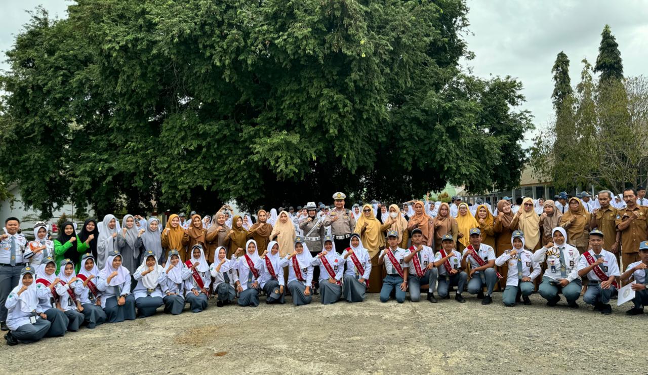 Disana, Kanit Gakkum Satlantas Polres Bone IPDA Andi Syamsualam menjadi irup dengan memberikan imbauan atau kepada pelajar tentang aturan berlalulintas dan menjaga keselamatan di jalan raya.