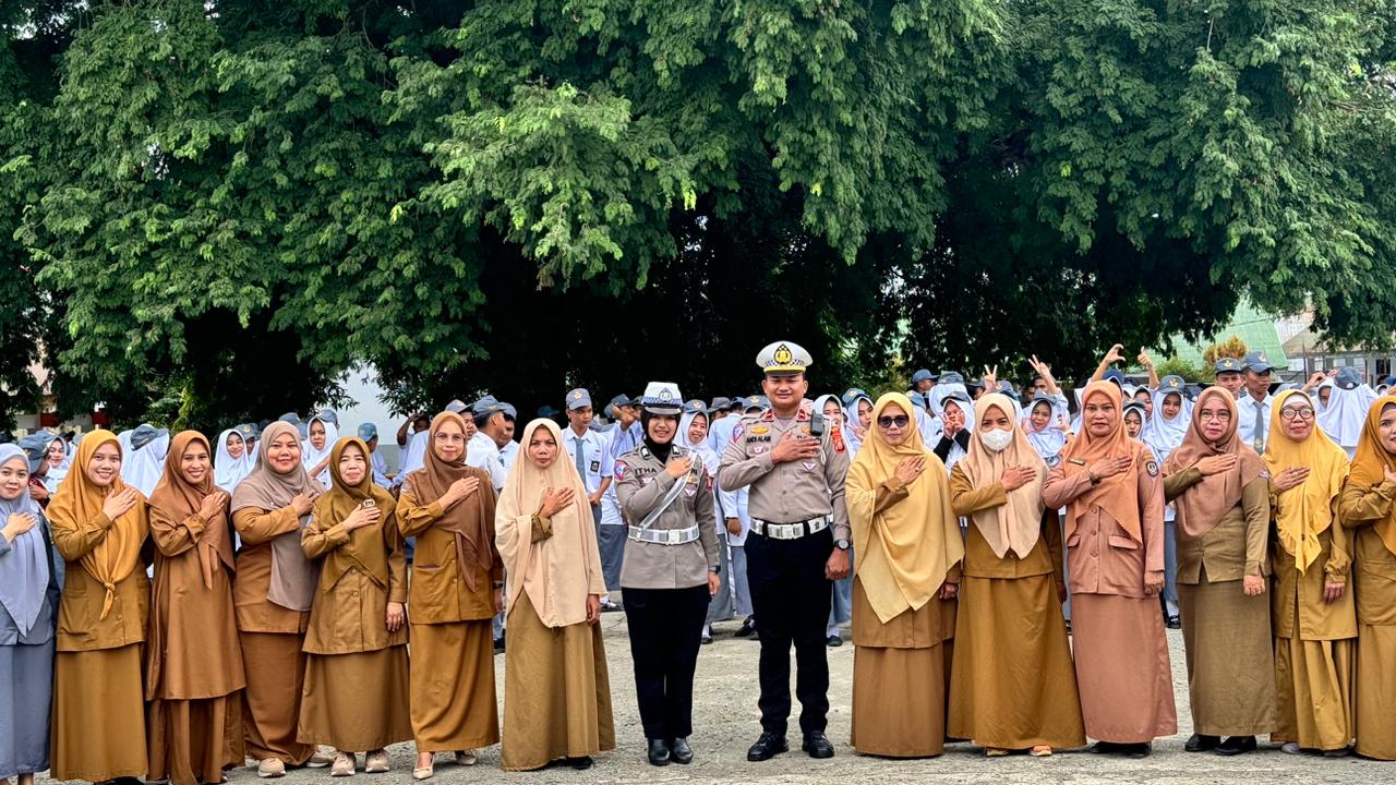 Disana, Kanit Gakkum Satlantas Polres Bone IPDA Andi Syamsualam menjadi irup dengan memberikan imbauan atau kepada pelajar tentang aturan berlalulintas dan menjaga keselamatan di jalan raya.