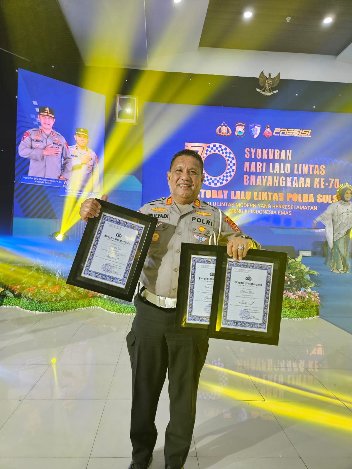 SOMASINEWS.COM BONE – Sat Lantas Polres Bone torehkan prestasi dalam ajang lomba HUT Lalu Lintas Bhayangkara Ke 70 yang di gelar oleh Ditlantas Polda Sulsel. Tak Tanggung tanggung, mereka memboyong tiga penghargaan sekaligus, Senin (22/9/2025) di Aula Mappaodang Mapolda Sulsel.