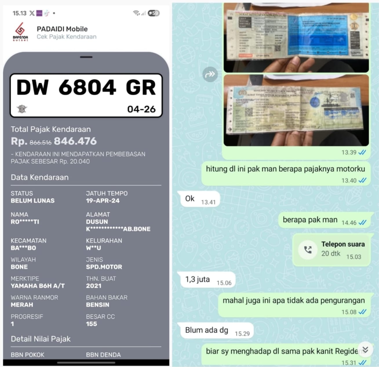 Cek pajak kendaraan melalui aplikasi biayanya berbeda dengan pembayaran di kantor Samsat Bone.
