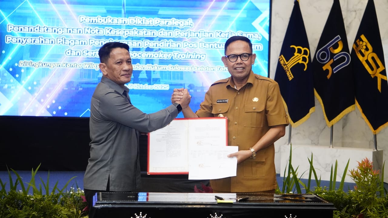 Selain penandatanganan MoU, acara juga dirangkaikan dengan Pembukaan Diklat Paralegal dan Penyerahan Sertifikat Peacemaker Training, yang menegaskan komitmen Kemenkumham Sulsel dalam mencetak kader hukum yang aktif dan peduli terhadap persoalan keadilan sosial di masyarakat.(*)