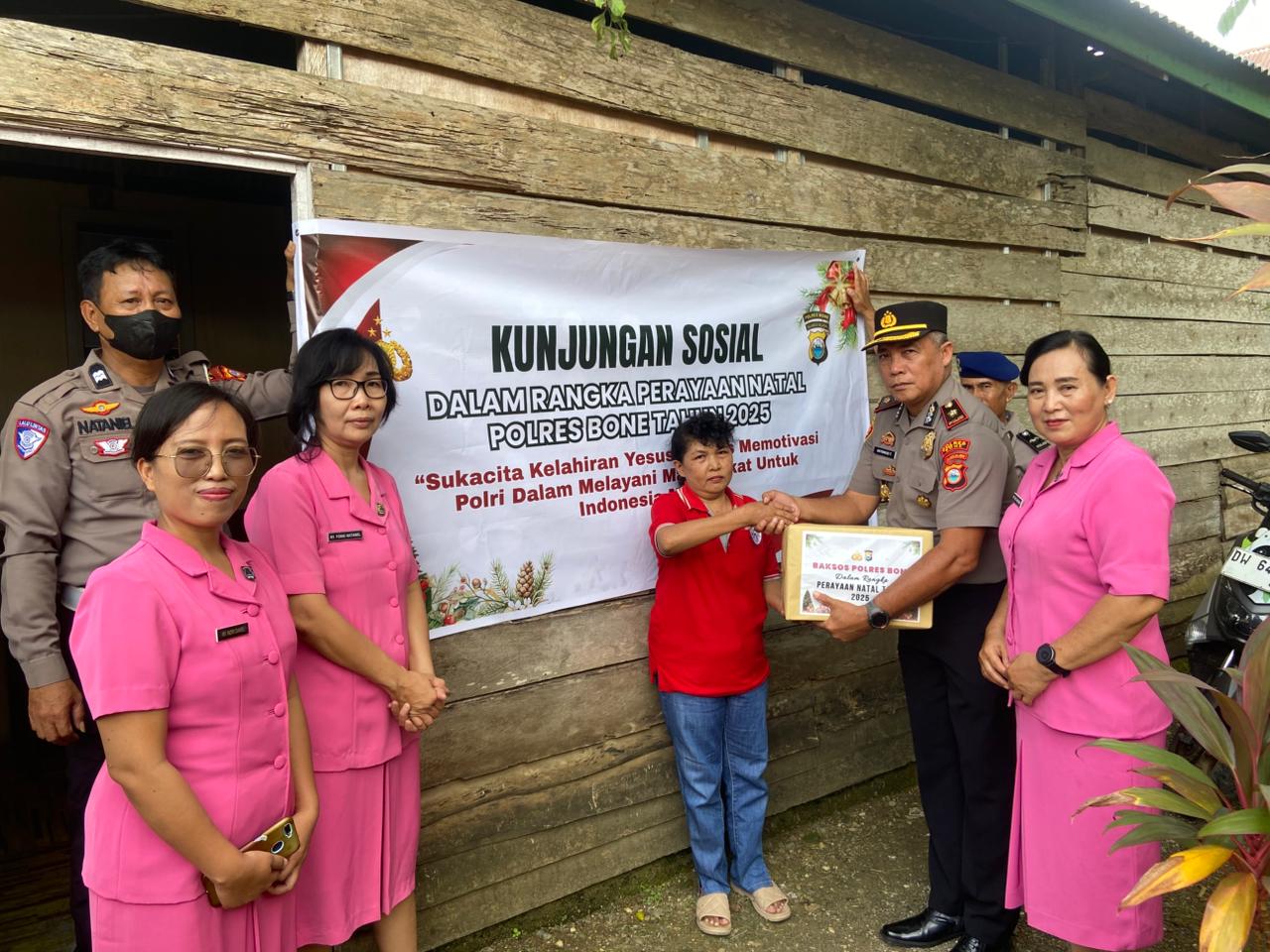 SOMASINEWS.COM BONE SULSEL -Dalam rangka menyambut dan merayakan Natal Polres Bone Tahun 2025, Wakapolres Bone Kompol Antonius Tutleta melaksanakan kunjungan sosial sebagai wujud kepedulian dan kebersamaan dengan masyarakat, Minggu, 14 Desember 2025.