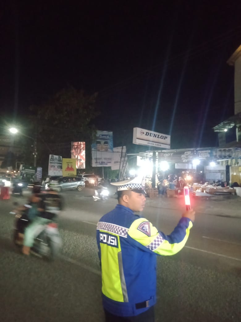 Personel tampak bersiaga mengatur kelancaran arus lalulintas demi menghindari penumpukan Kendaraan.
