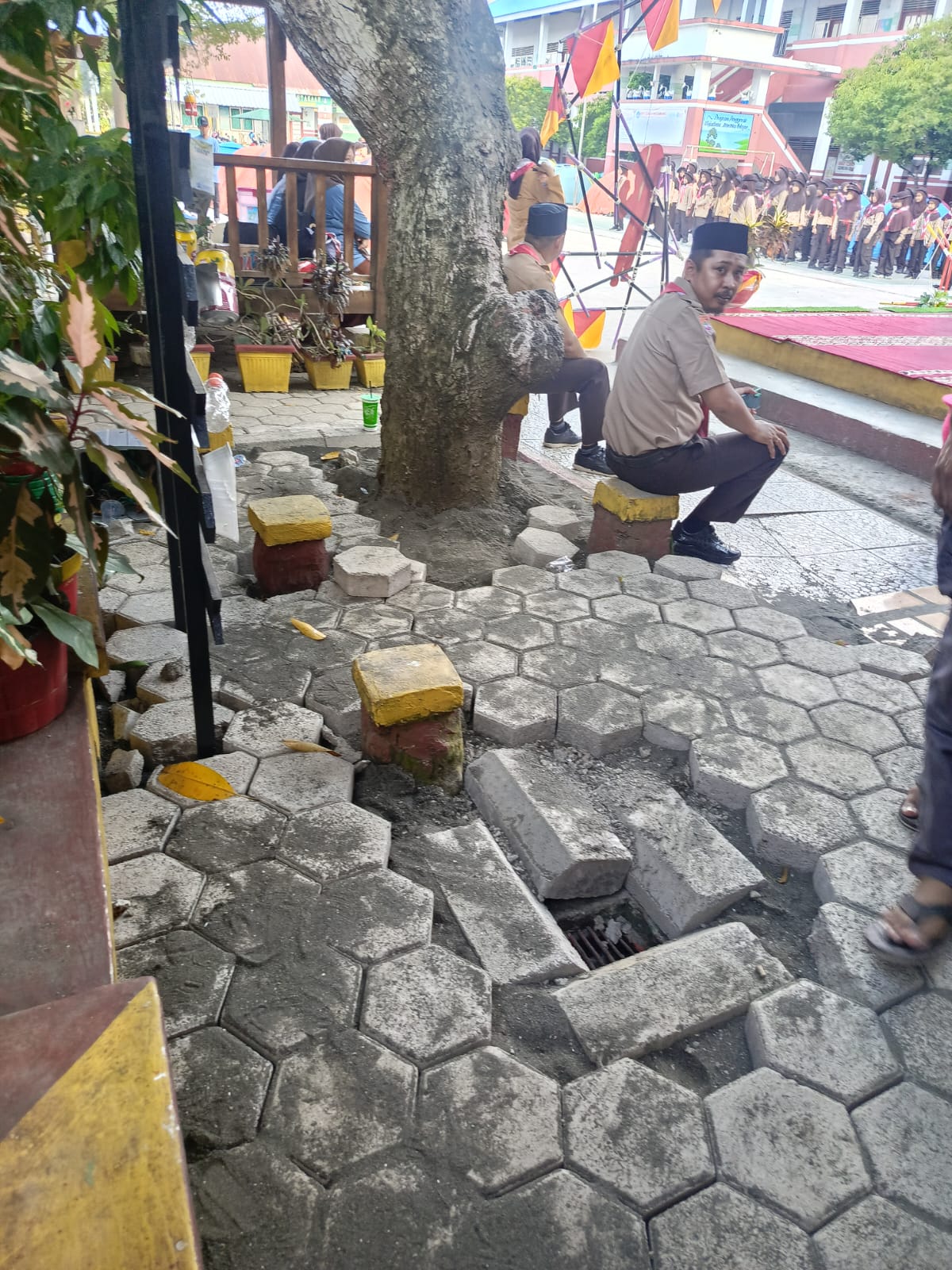 “Pelataran paving dibuat lebih tinggi dari lantai ruang kelas dan ruang perpustakaan. Ini jelas berisiko besar, karena ketika hujan deras turun, air akan mudah masuk dan menggenangi ruangan,” ungkapnya.