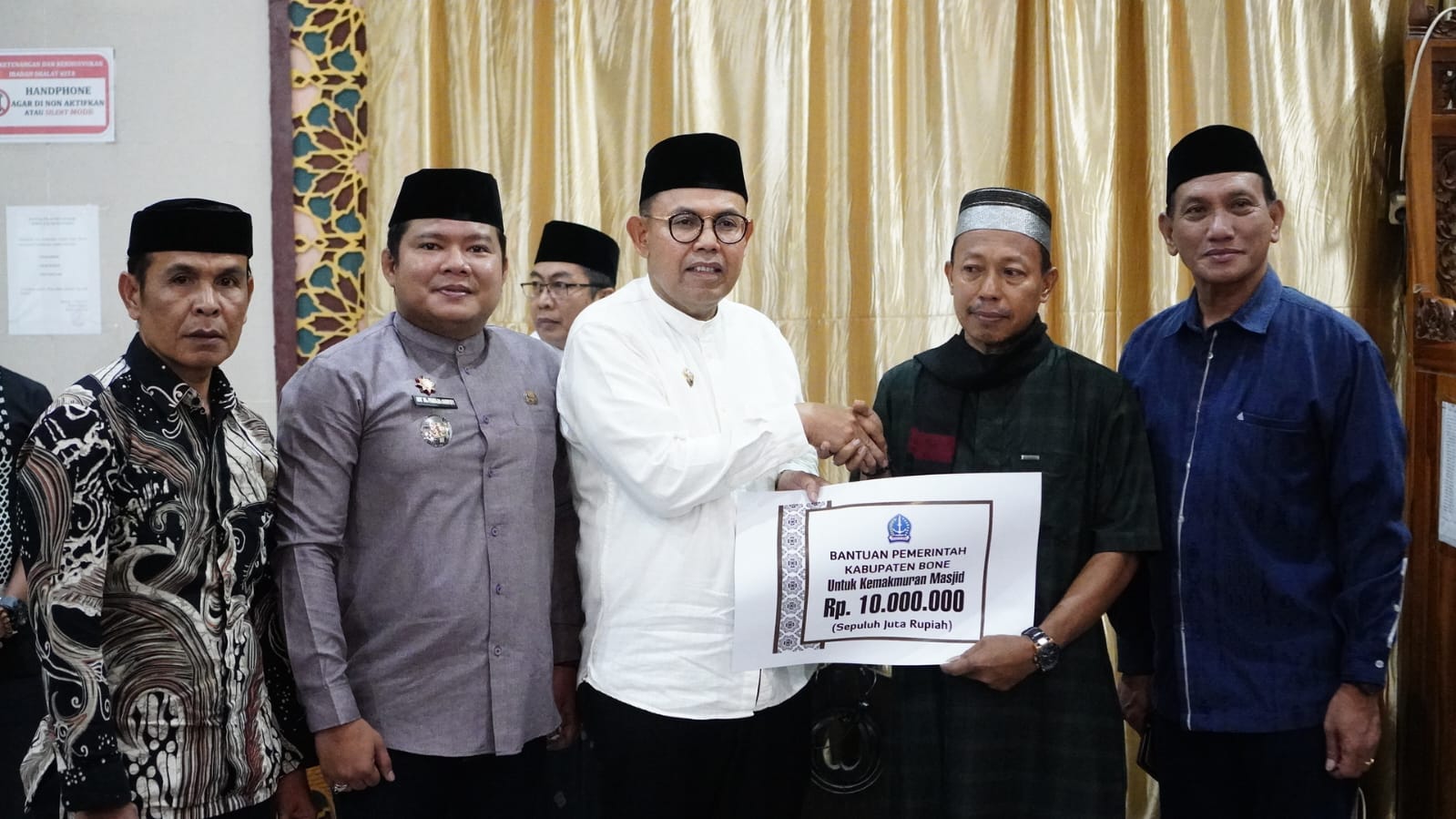 Selain itu, Andi Akmal menyerahkan bantuan Pemkab Bone untuk kemakmuran masjid. Namun nominal Rp 10 juta bantuan itu langsung diubah untuk renovasi masjid yang setiap tahun ditempati oleh calon jemaah haji berkumpul di Bone Barat.