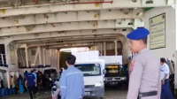 Personil Satpolairud Polres Bone Lakukan Pengamanan Penyeberangan Kepada Penumpang Kapal Ferry