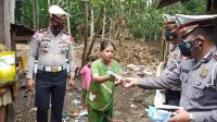 Kasat Lantas Polres Bone Bagikan Bansos Beras dan Masker Pada Warga Kurang Mampu
