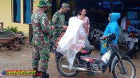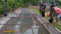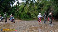 Wujud Kepedulian, Personel Satgas TMMD Kodim 0306/50 Kota Bantu Warga Menyeberangi Anak Sungai