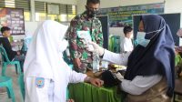 Serbuan Vaksinasi Nasional Di Wilayah Kodim 1421/Pangkep Sulsel Untuk Siswa siswi SMP Negeri 1 Labakkang.